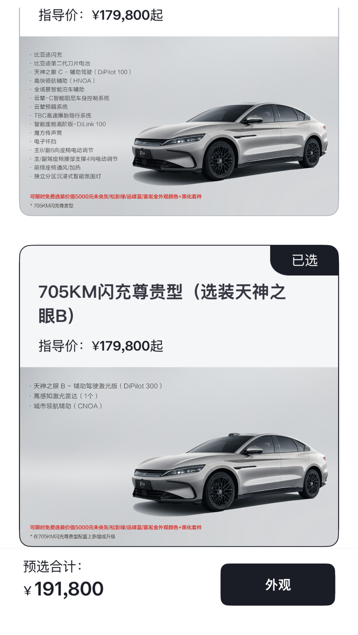 比亚迪天神之眼 B 版选装,已涨到 12000 元,软硬件打包一体(图2)。