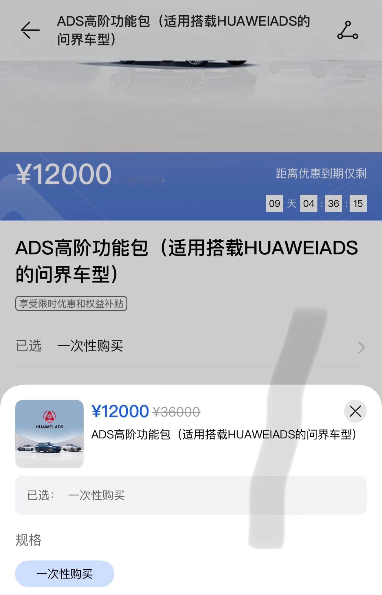 华系车企则是另一种玩法:硬件标配,软件单独付费 12000 元解锁(图4),当然用户选了高阶辅助驾驶的版本,一般也默认会掏这笔钱。
