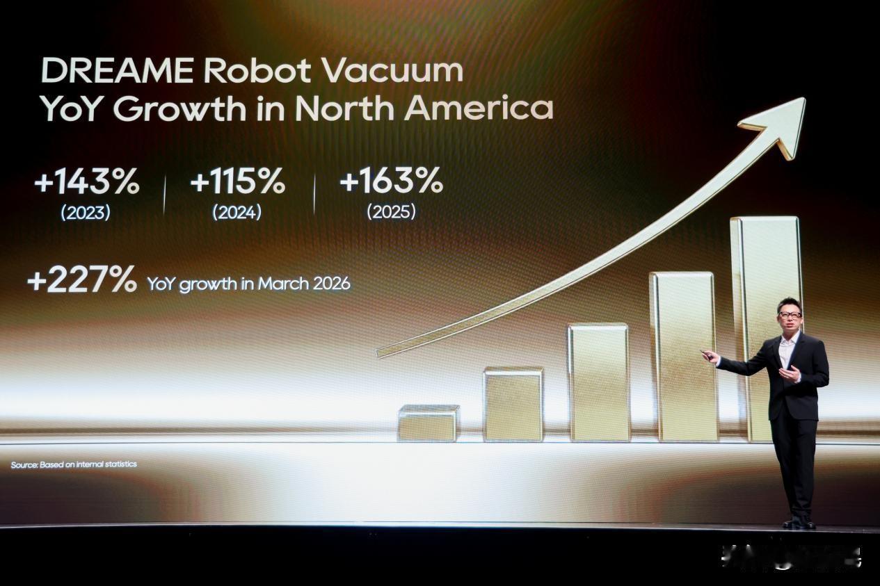硅谷是全世界科技产品最苛刻的试炼场。追觅扫地机凭借极致体验与硬核技术,收获了硅谷工程师、行业顶级媒体、产品测评机构等清一色的好评——2025年追觅扫地机北美市场全年增长率达163%,2026年第一季度同比增长率159%,3月单月更是飙涨至227%,增速稳居行业榜首,以不可辩驳的态势领跑全球高端市场。