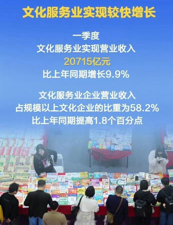 一季度文化企业收入超3.5万亿元 开门红!2026一季度规上文化企业营收35569亿,同比+6.4%。新业态猛涨11.2%,创意设计、内容创作两位数领跑。文化消费越来越旺,你最近为文化产业贡献了多少?