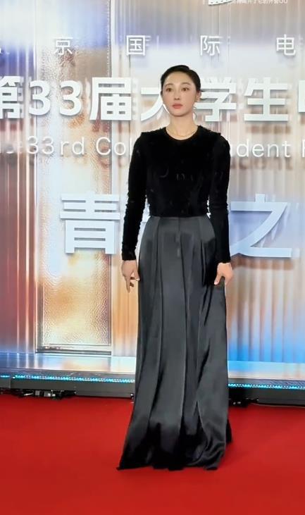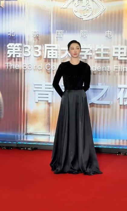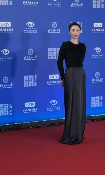 今天白百何在北京出席第33届大学生电影节,她这次穿了一身黑色的衣服,看上去很有气势。