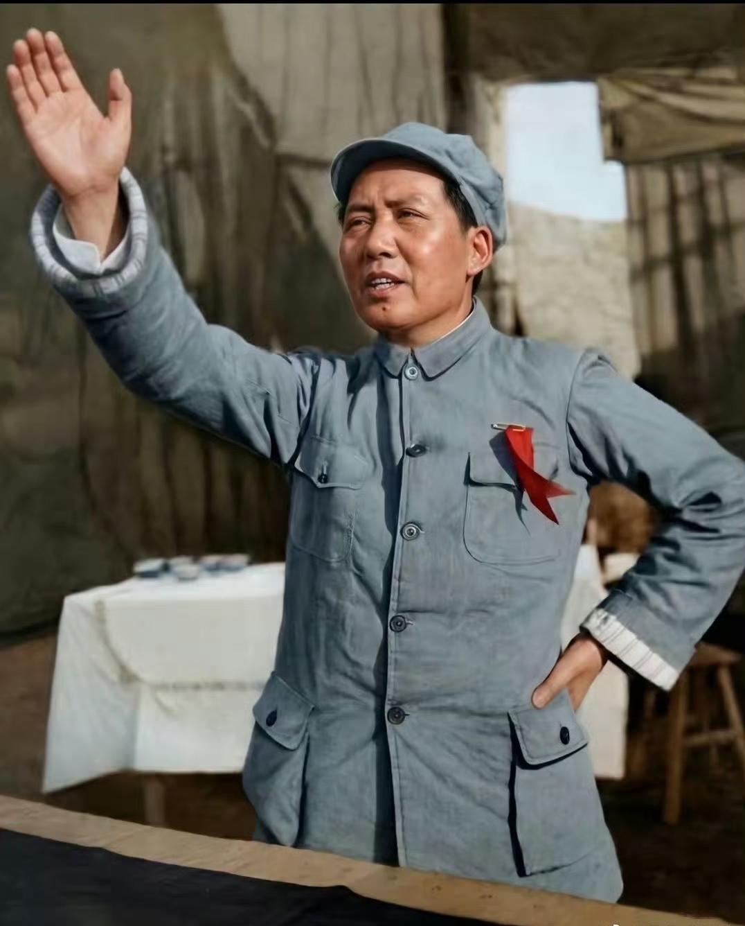 战火纷飞的年代,条件异常艰苦,两位伟人衣着朴素、一身布衣。他们并肩相伴,风雨同舟,在简陋的环境里为国操劳。
