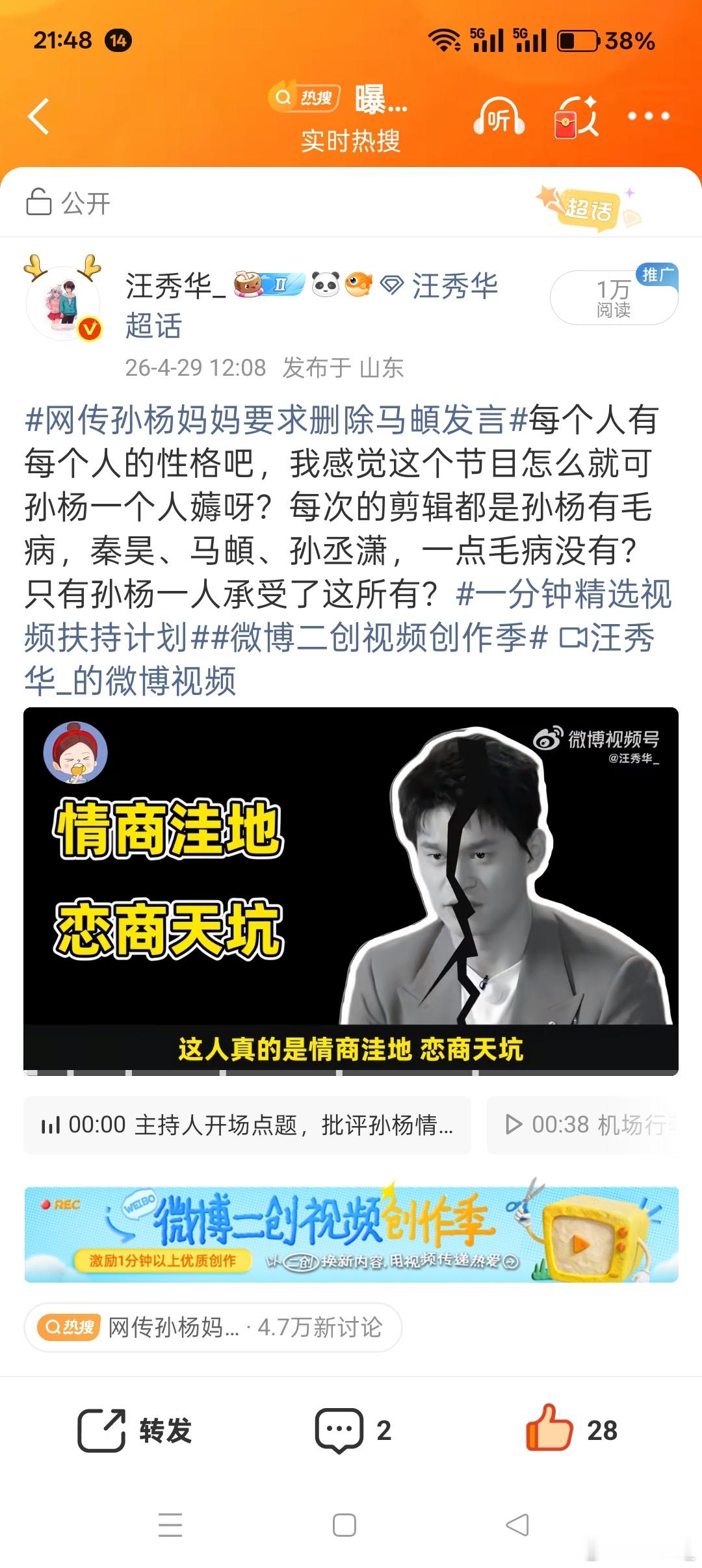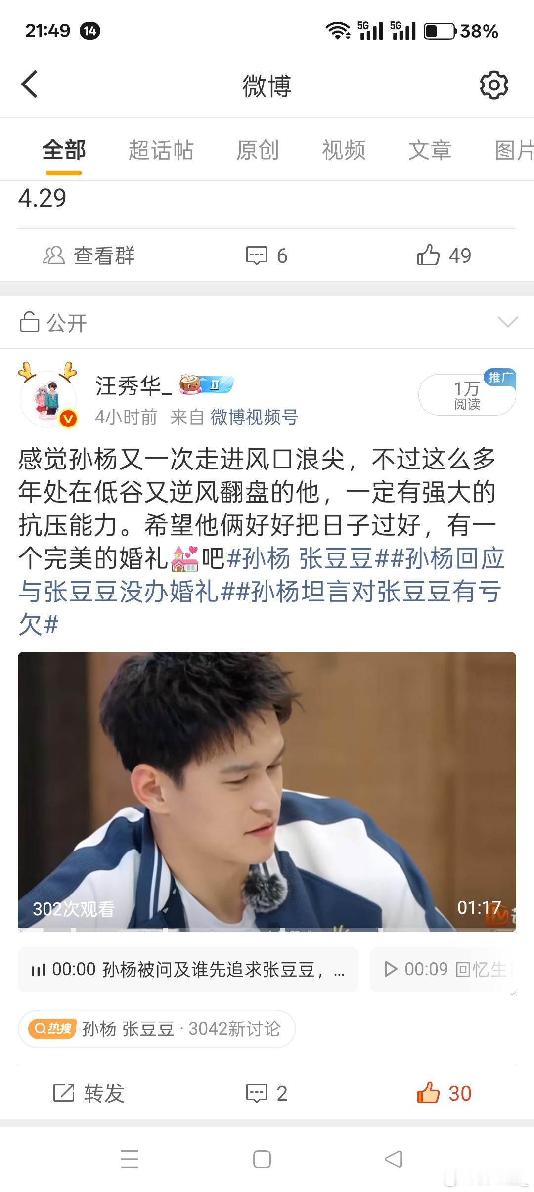 孙杨的父亲孙杨的父亲、孙杨的母亲、孙杨的张豆豆、孙杨的前女友,孙杨的私生子,还有多少词条让孙杨霸榜娱乐榜?这一天就没消停?人家的正面回应,你们视而不见吗?