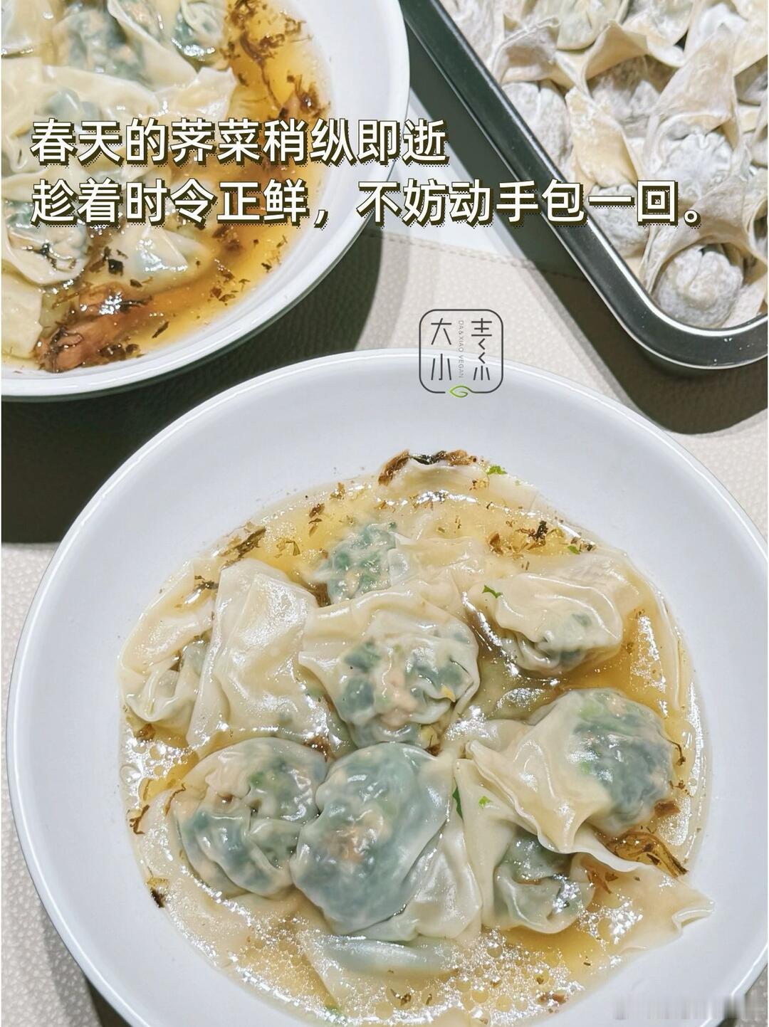 【荠菜素馅馄饨】荠菜正当季,做成馄饨最是鲜。by:大小素