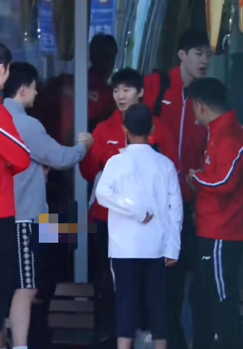 临出发前,马龙特意停下来,跟曼昱握了握手。曼昱握完手,眼睛都弯成了月牙,笑着点头。