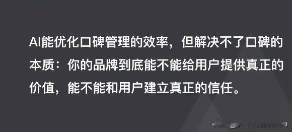 AI能优化口碑管理的效率,但解决不了口碑的本质:你的品牌到底能不能给用户提供真正的价值,能不能和用户建立真正的信任。