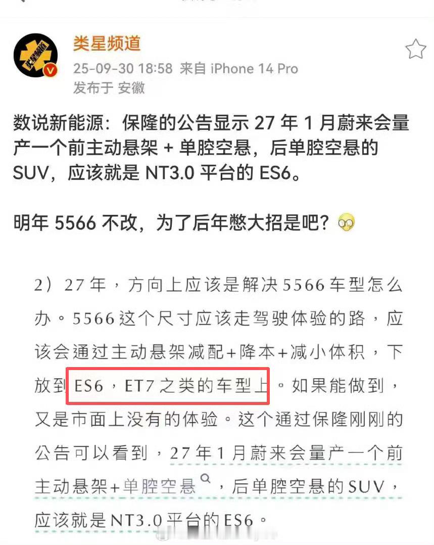 蔚来ES8能否装备天行全主动悬架?
