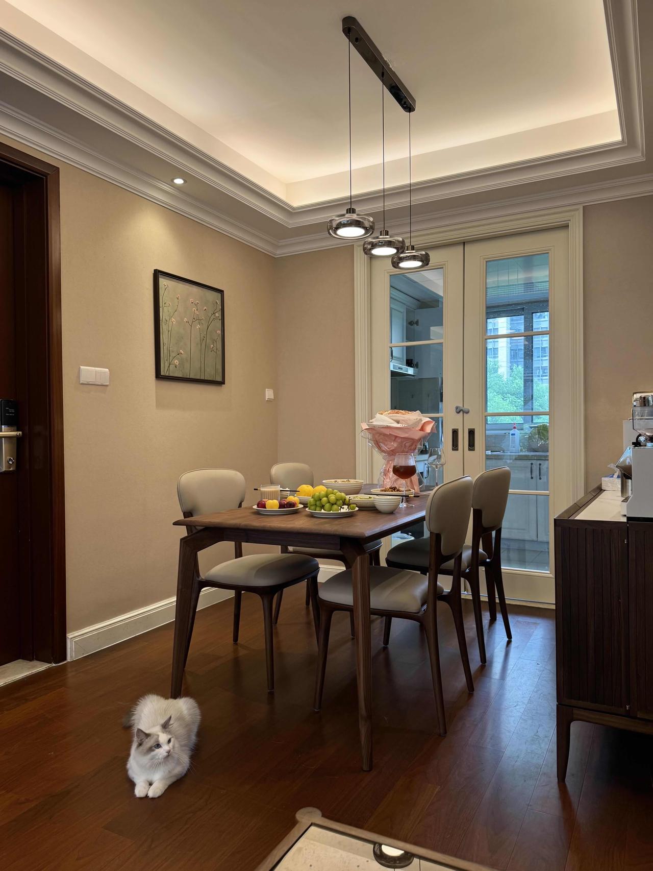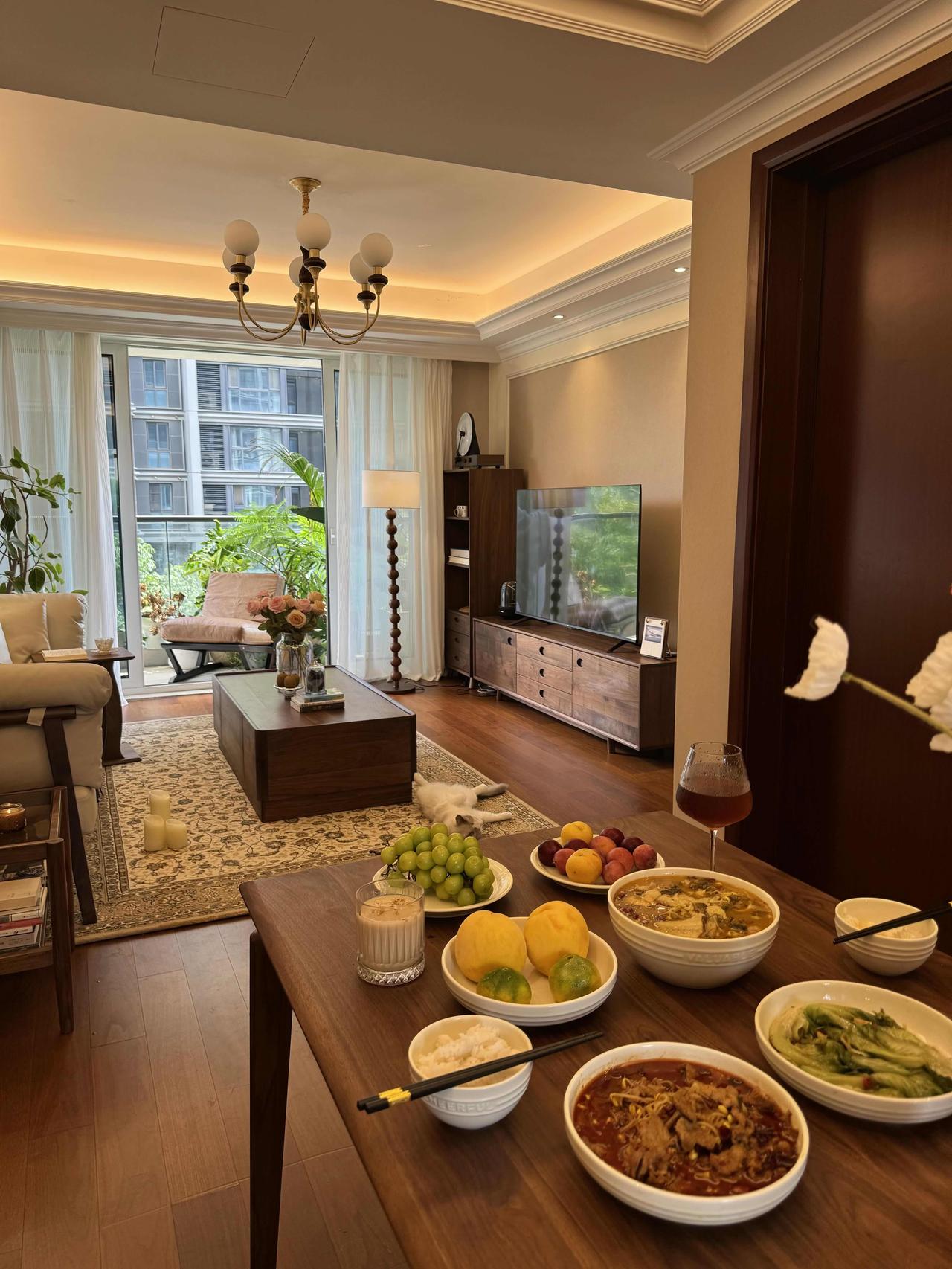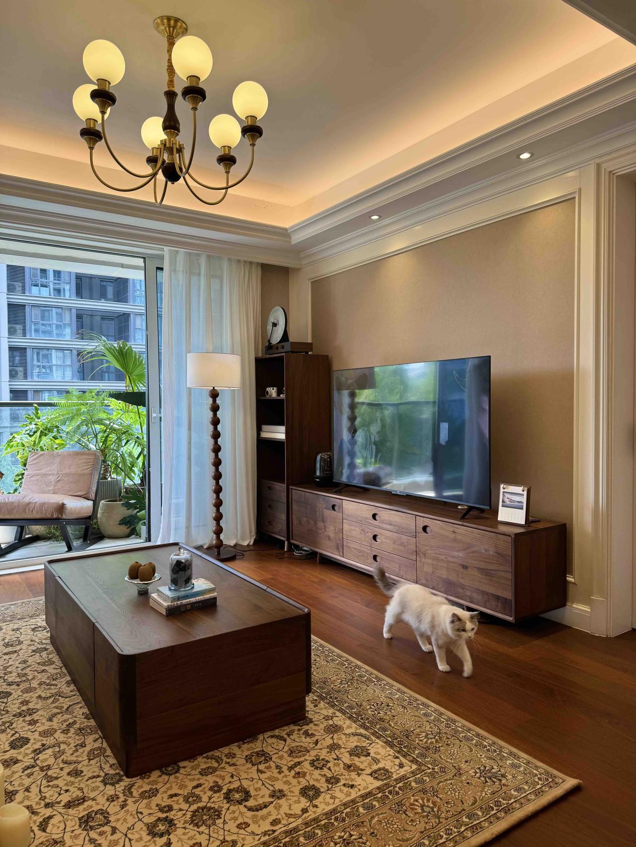 但我们都很满意,老人常说,家里干净整洁,住着就顺心,我觉得这话对,每天回到家,阳光落在胡桃木的纹理上,两只猫窝在沙发角落打盹,厨房里飘着饭菜香。那是一种安安静静、实实在在的日子。