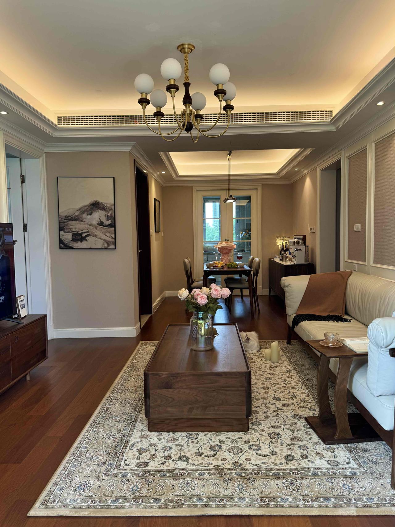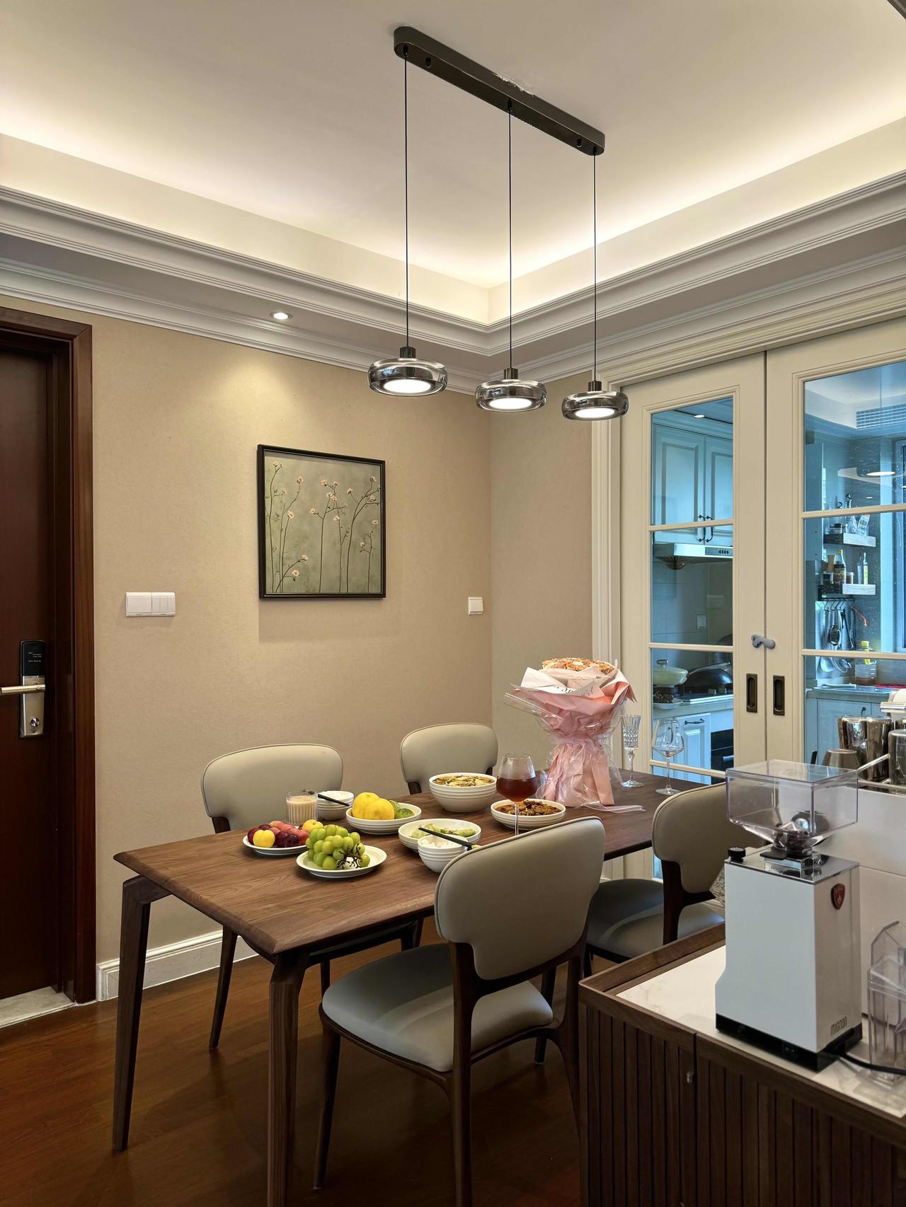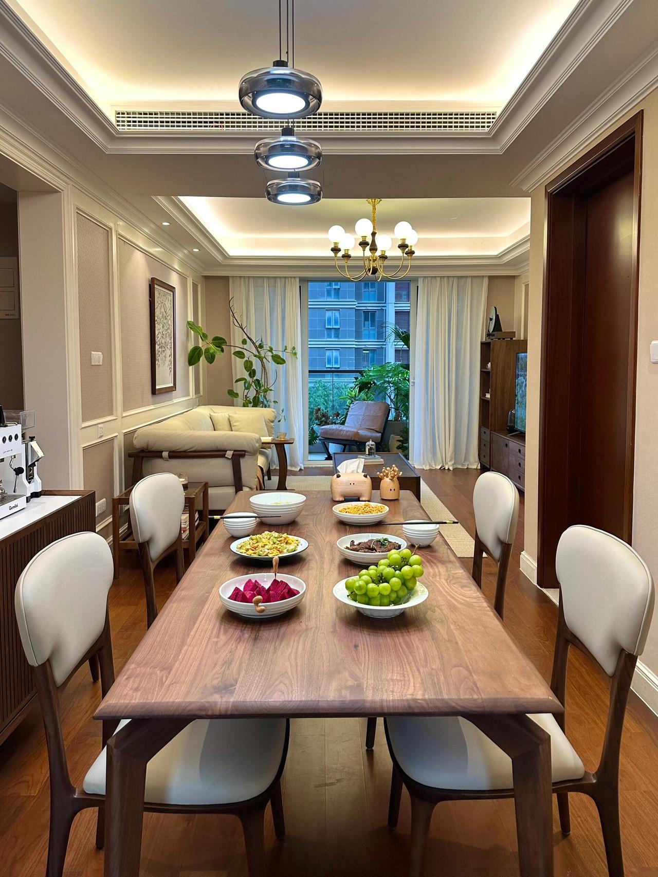 但我们都很满意,老人常说,家里干净整洁,住着就顺心,我觉得这话对,每天回到家,阳光落在胡桃木的纹理上,两只猫窝在沙发角落打盹,厨房里飘着饭菜香。那是一种安安静静、实实在在的日子。
