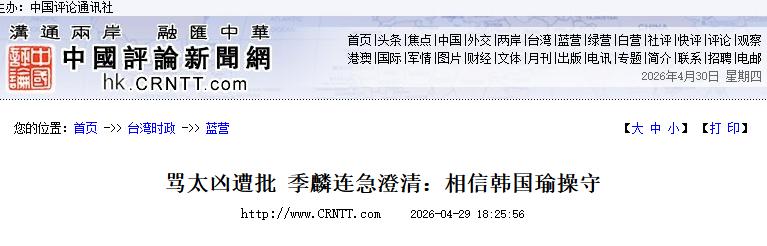 季麟连一边说要开除韩国瑜党籍,一边又强调两人是“40年来的革命袍泽、铁杆兄弟”。这种前后矛盾的说法,让人怀疑他到底是想解决问题,还是纯粹为了刷存在感。