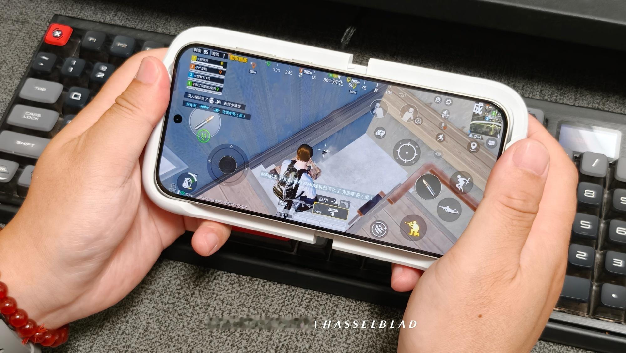 再说下这个一加枪神游戏手柄,比我意想的轻,按键位置相当合理,玩吃鸡真的是最强辅助扣动扳机等同我们直接握着手机背面的位置,按键的方案可以自己设置,反映是真的超级快,蹲在这个位置敌人还没来得及开枪就被我灭了两个,一加Ace6至尊版有这个手柄,何愁大业不成,太好玩了一加手机