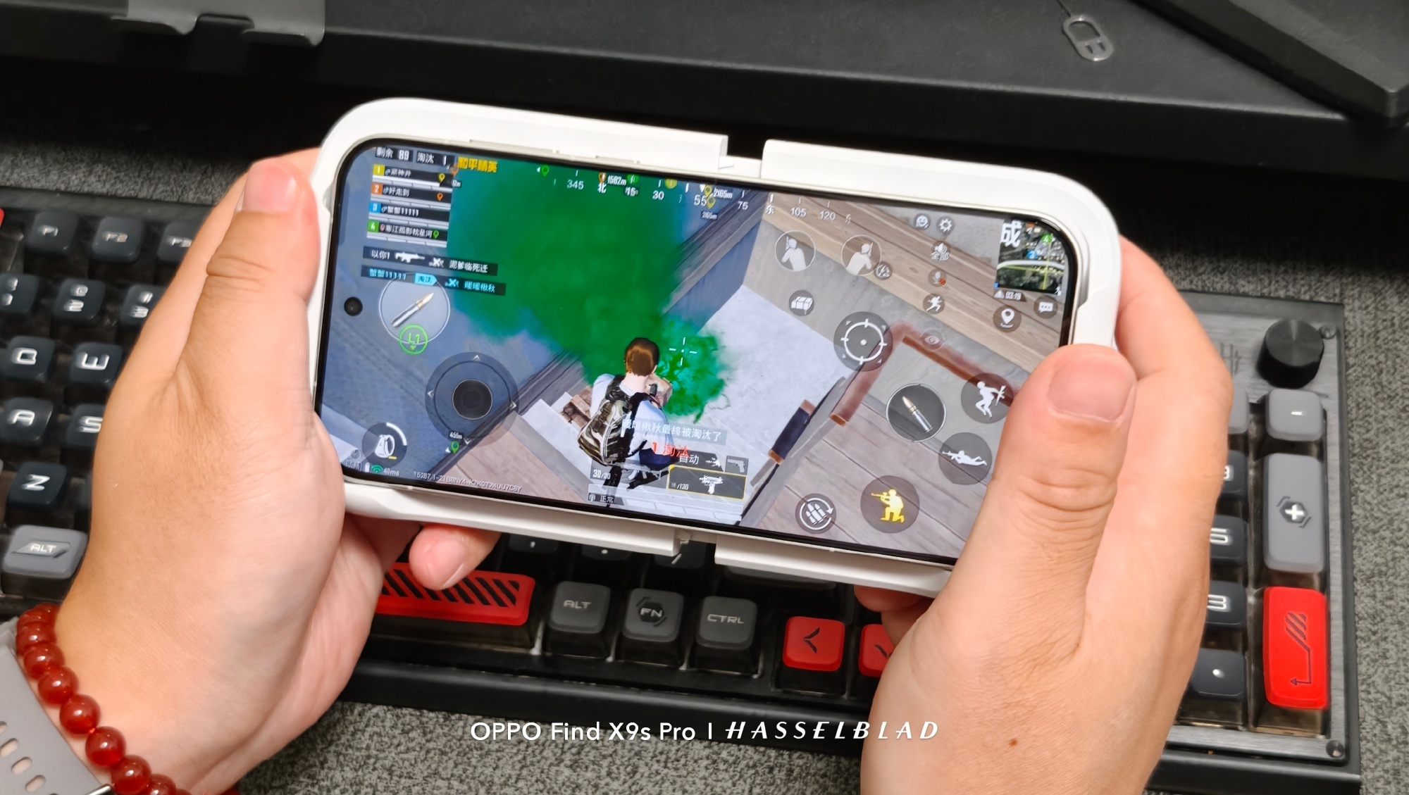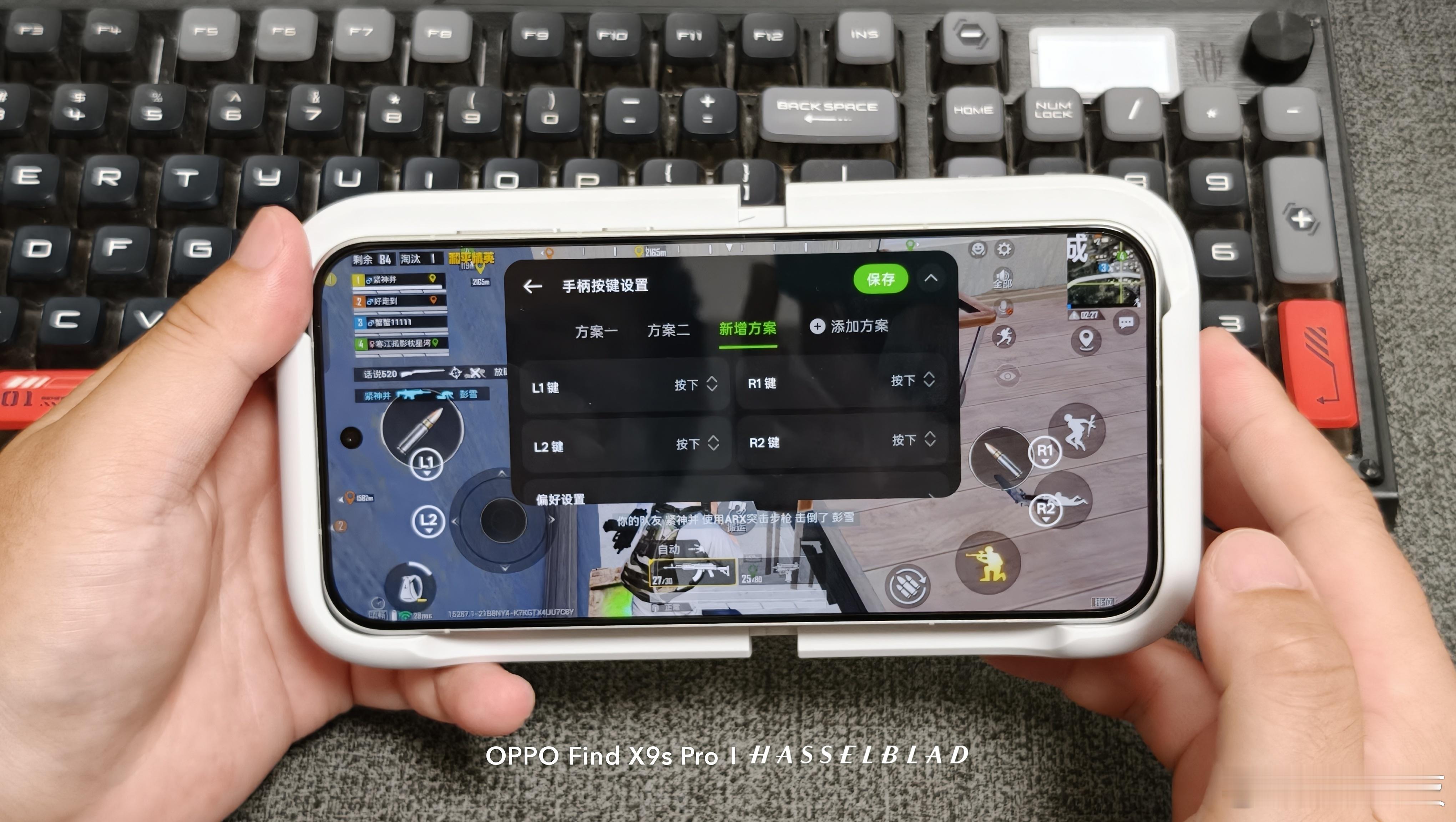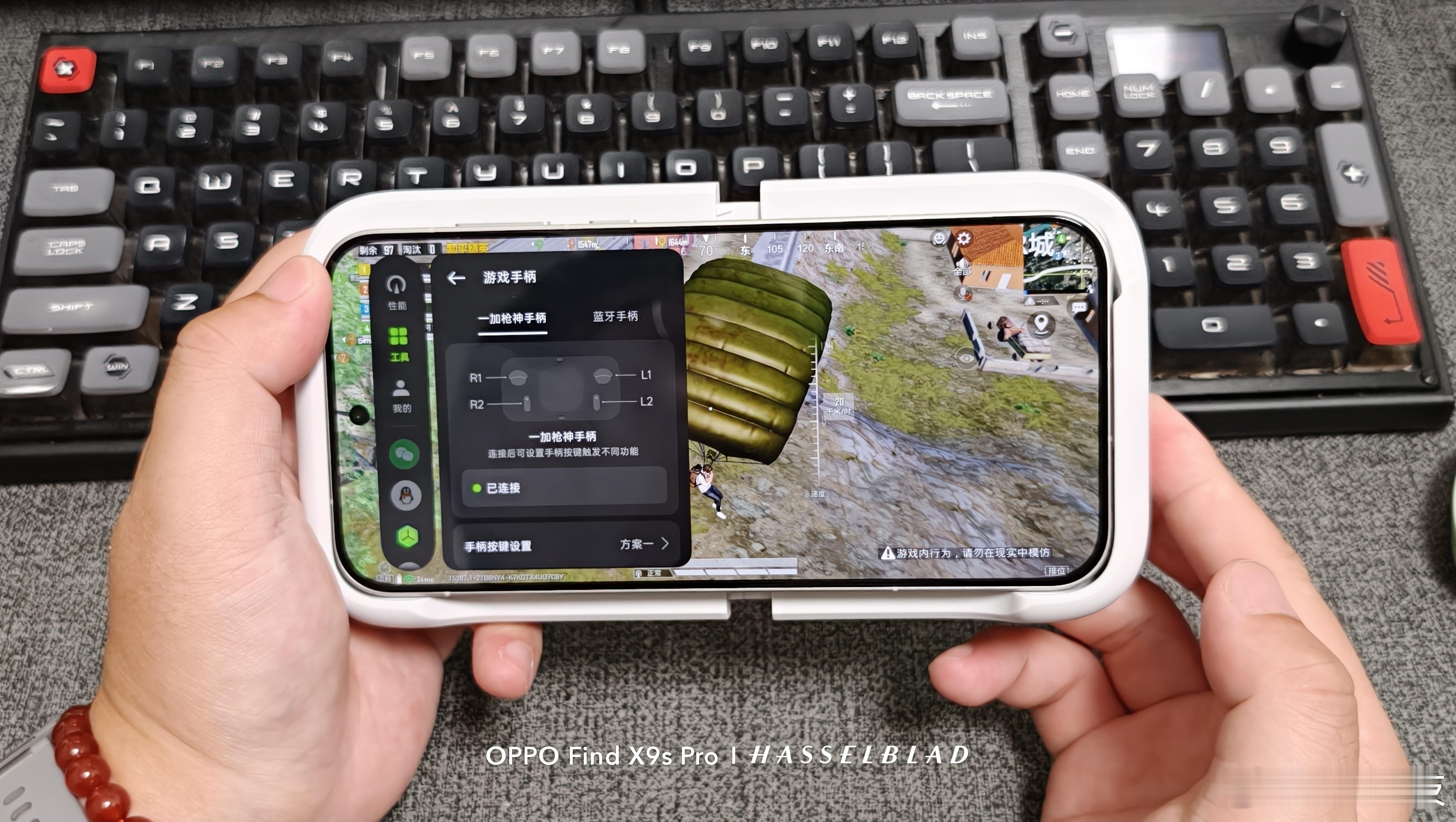 再说下这个一加枪神游戏手柄,比我意想的轻,按键位置相当合理,玩吃鸡真的是最强辅助