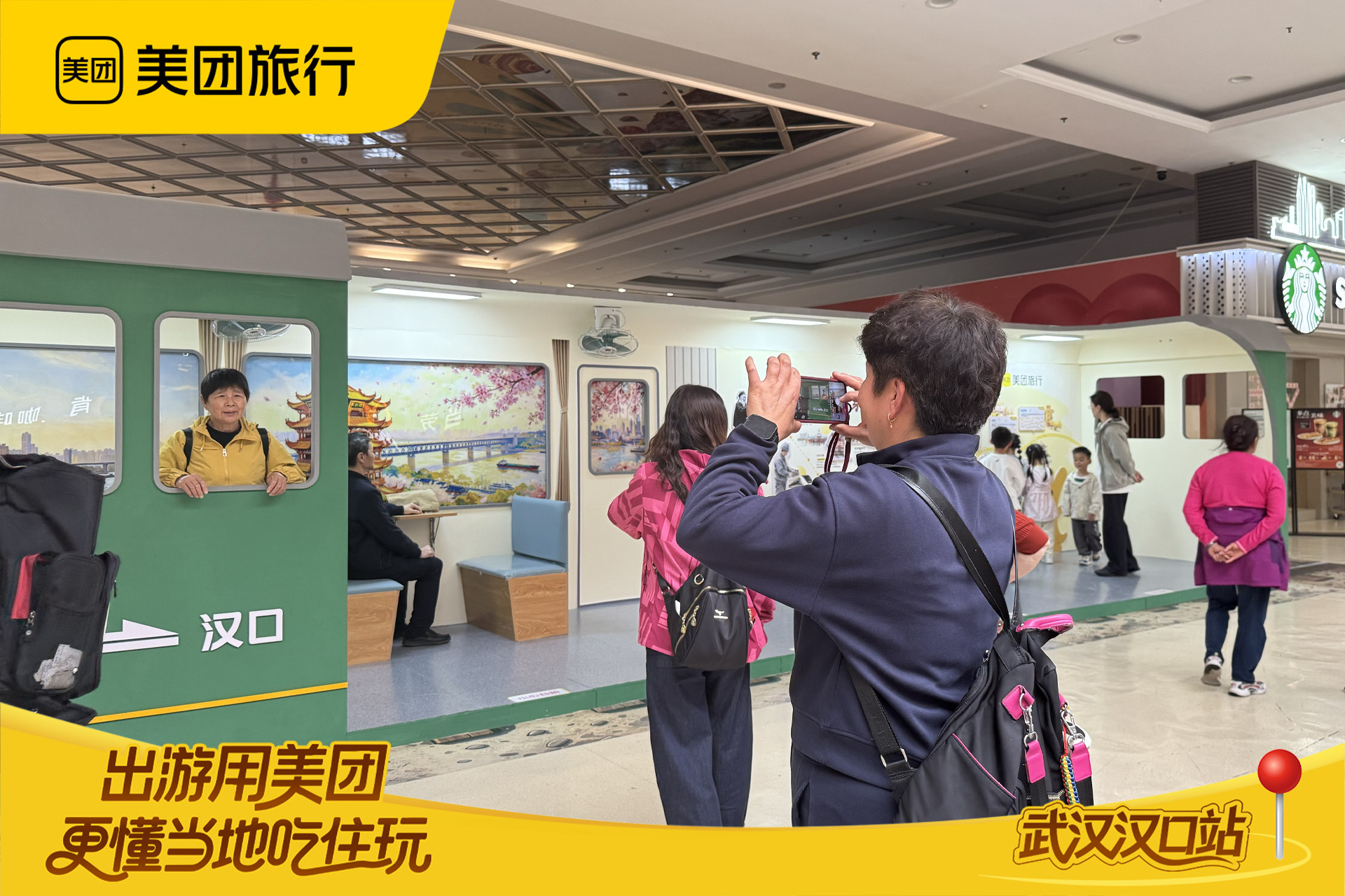 网友打卡偶遇老人致信武汉 汉口站复古火车头超好出片,一旁还有美团旅行武汉景点推荐墙。跟着懂本地吃住玩的美团旅行逛武汉,上APP订住行门票,优惠多多还不踩雷。出游用美团更懂当地吃住玩美团旅行