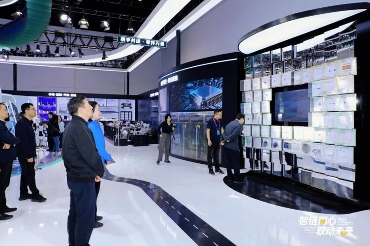 沿着展区动线慢慢前行,“共造一辆车、共建一条路、共享一个生态”的标语在灯光下格外醒目,生态港招商成果展区前更是人头攒动。“芯心象融”核心展区,无疑是全场最热闹的地方,芯片展区前观众络绎不绝。一颗颗小巧精致的车规级芯片整齐陈列在透明展柜中,灯光下泛着细腻的光泽,工作人员耐心地向观众讲解:“这就是汽车的‘大脑’,咱们京津冀协同攻关,已经形成了‘研发-配套-制造’的完整闭环。”有观众踮起脚尖,透过展柜仔细观察芯片的细节,有人拿出手机近距离拍摄,还有家长带着孩子,轻声讲解芯片的作用,让这份科技力量,以最直观的方式走进每个人心中,每项技术突破,都让观众倍感自豪。