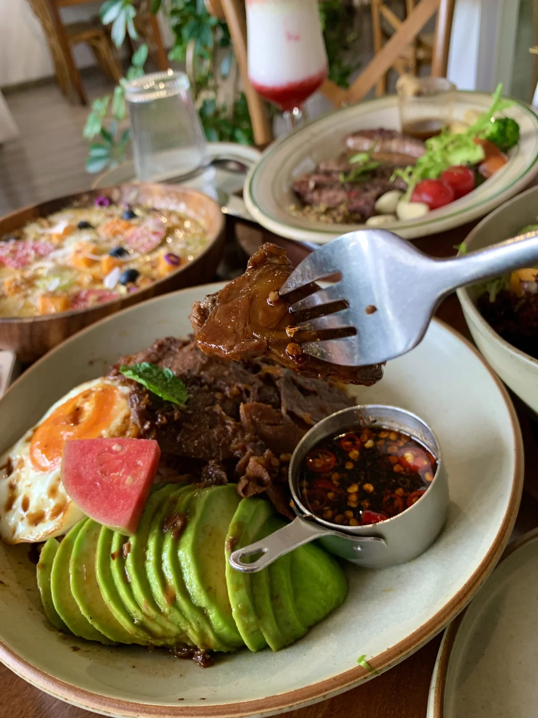 这个饭的酱汁真的绝了 蘸鞋底都好吃好吗 配上超香酱卤牛肉和软滑的牛油果一口一口好yummy