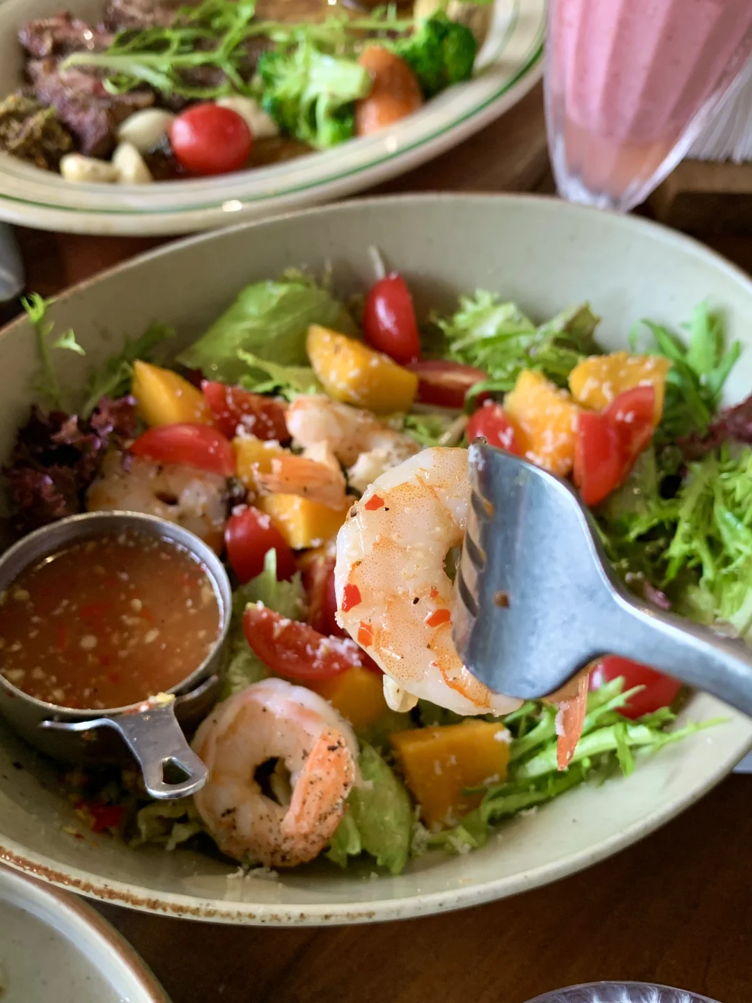 虾肉紧实 芒果鲜甜 沙拉也很新鲜 酱汁有几种 我选的减脂酱汁 一样好吃!