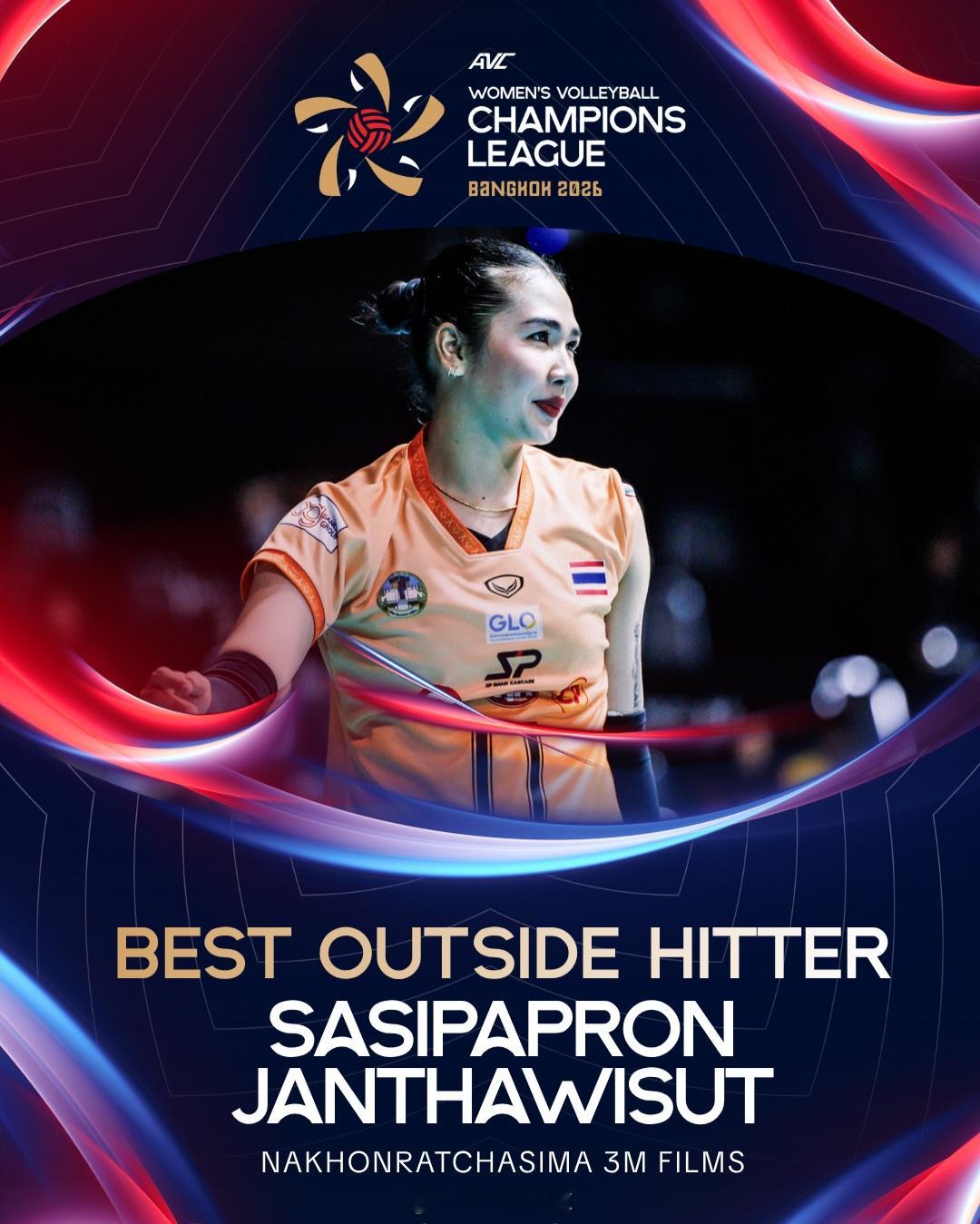 最有价值球员(MVP):佐藤淑乃(NEC)。最佳主攻:萨斯帕蓬(呵叻)、佐藤淑乃(NEC);最佳副攻:凯奥卡拉亚(呵叻)、山田二千华(NEC);最佳接应:S·恩瓦卡洛(NEC);最佳二传:中川司(NEC);最佳自由人:贝克特(捷迪苏)。