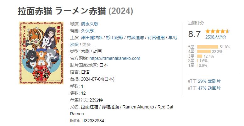 从画面的质感上来说,《拉面赤猫》确实难逃一喷。可从故事、创意上来说,这部日漫确实不赖,这也让观众忽略了它最为明显缺陷,为它打出了8.7的高分。