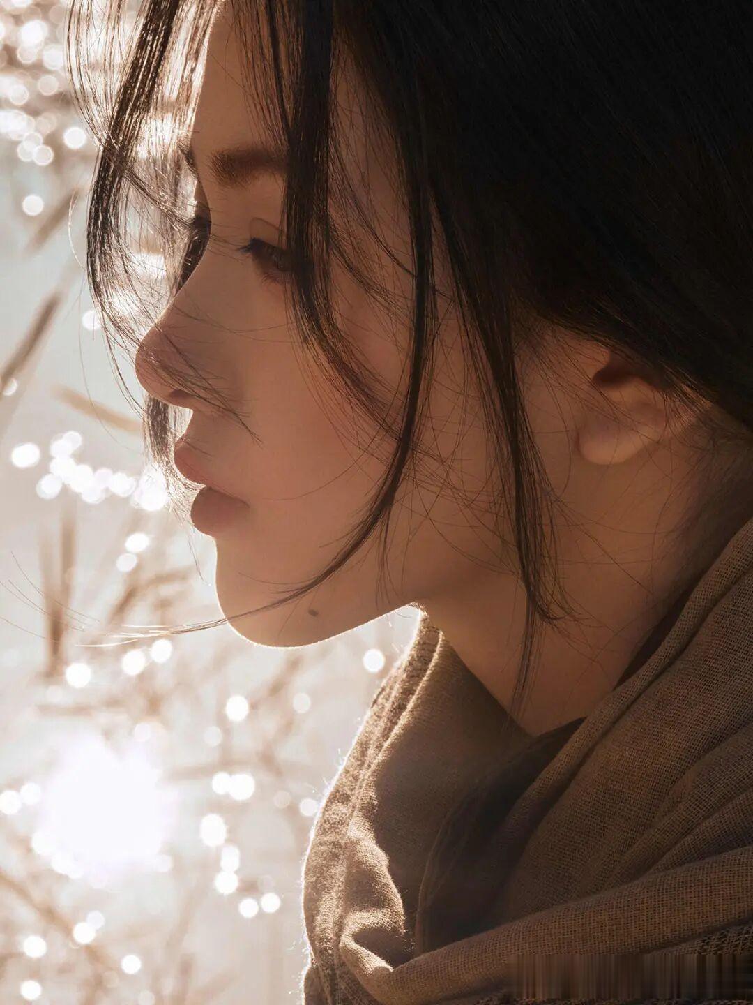 逆光拍摄,模特侧脸入镜,面部轮廓优越,或者是正面直视镜头都可以,背景的光斑点点也为照片增色不少。