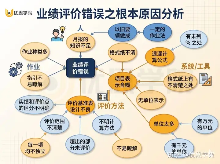 例如,某公司的业绩评价常发生错误现象,利用关联图找出原因为:项目表示含糊、月报的知识不足、评价基准表难用,以下是一个关联图的具体例子。