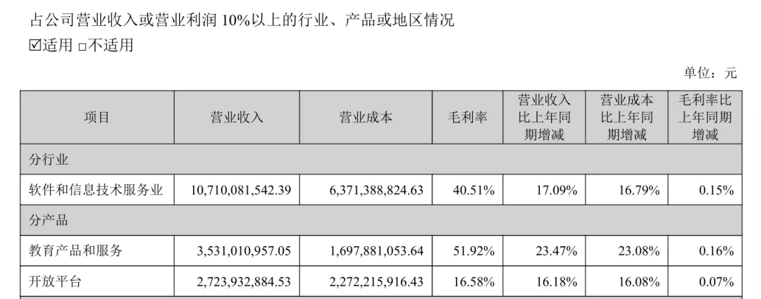 教育产品和服务,营收同比增加23.47%,成本同比增加23.08%,结果毛利率同比只增加了0.16%;