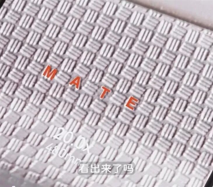 更令人惊喜的是,华为在Mate 80系列的金属机身上引入了创新的光绘微纹工艺。这一工艺的精妙之处在于,它将“Mate”字样微缩雕刻在机身背部,平时几乎难以察觉,但通过长焦镜头放大20倍后,清晰的“MATE”四个字母便跃然眼前。这种隐藏式的设计,为产品增添了一份探索的乐趣与艺术的质感。