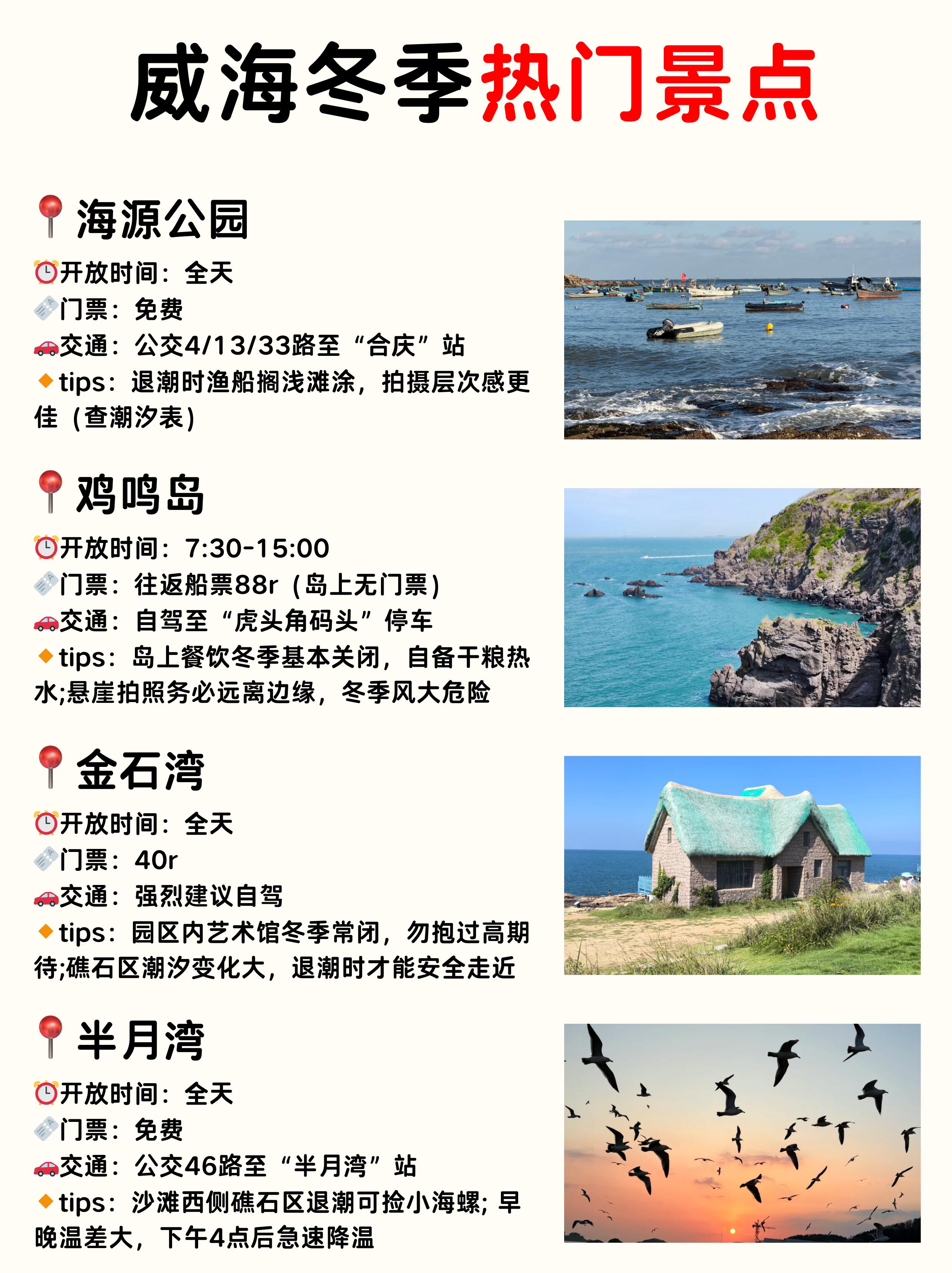 2️⃣威海冬季日落较早,约在下午五点前后,建议安排户外行程尽量在光线充足时段