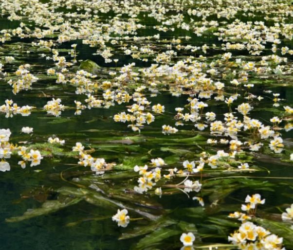 澄江河最引人注目的是其“河水开花”的奇观。每年5月至10月,河面上会绽放出星星点点的洁白海菜花。这些海菜花对水质要求极高,它们的存在证明了澄江河水质的纯净。晨光中,带着露珠的海菜花泛着柔和的光泽,宛如白珍珠洒落在碧绿的绸缎上。