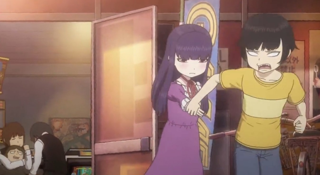 此后,男主在一次小卖部门口又偶遇了大野晶,她正轻松的通关了一部游戏。不服输的春雄也想向大野晶一样通关,却发现这部游戏机已经毁坏的不成样子,结果显而易见,男主直接被游戏Boss击杀。