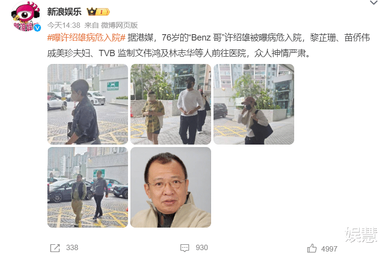 2025年10月27日,据港媒报道,TVB知名绿叶许绍雄病危入院,家人和好友被急召到医院见面。