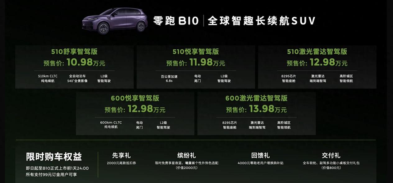 15万内没对手?零跑B10预售价10.98-13.98万,激光雷达+爆胎稳定