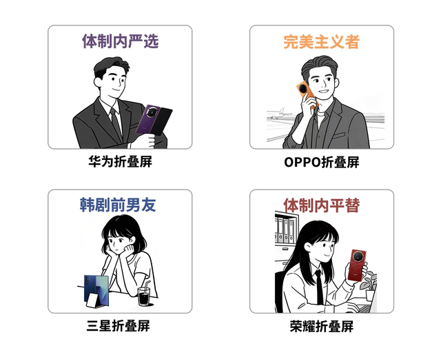 这套火遍全网的说法就是:华为Mate X7是体制内严选,OPPO Find N6是完美主义者首选,三星 Z Fold7是韩剧前男友,荣耀Magic V6是体制内平替。短短几句话,直接把四款热门折叠屏的核心拿捏得死死的。