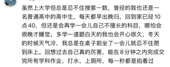 高中生活的吸引力,正在于它提供了一种看得见的努力路径。哪怕结果不理想,但过程中那种不必自行决策的确定感依然值得人们忍受因之而来的压力。