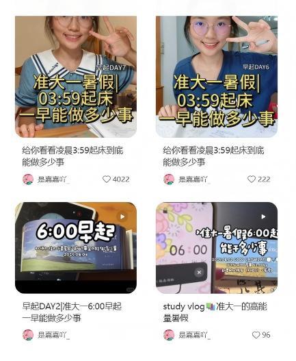 (“是嘉嘉吖”热衷分享早起学习的内容。图/社交媒体截图)