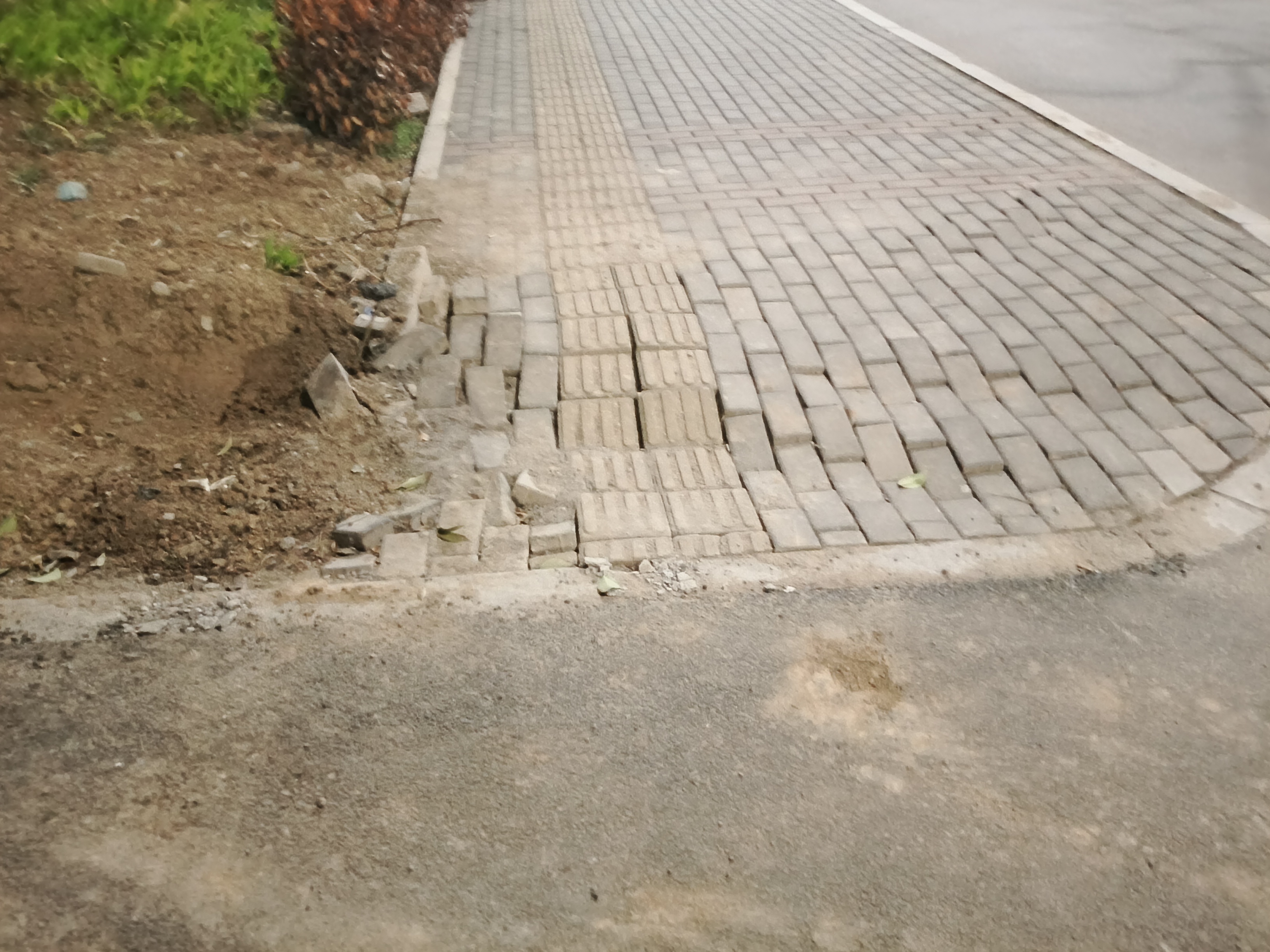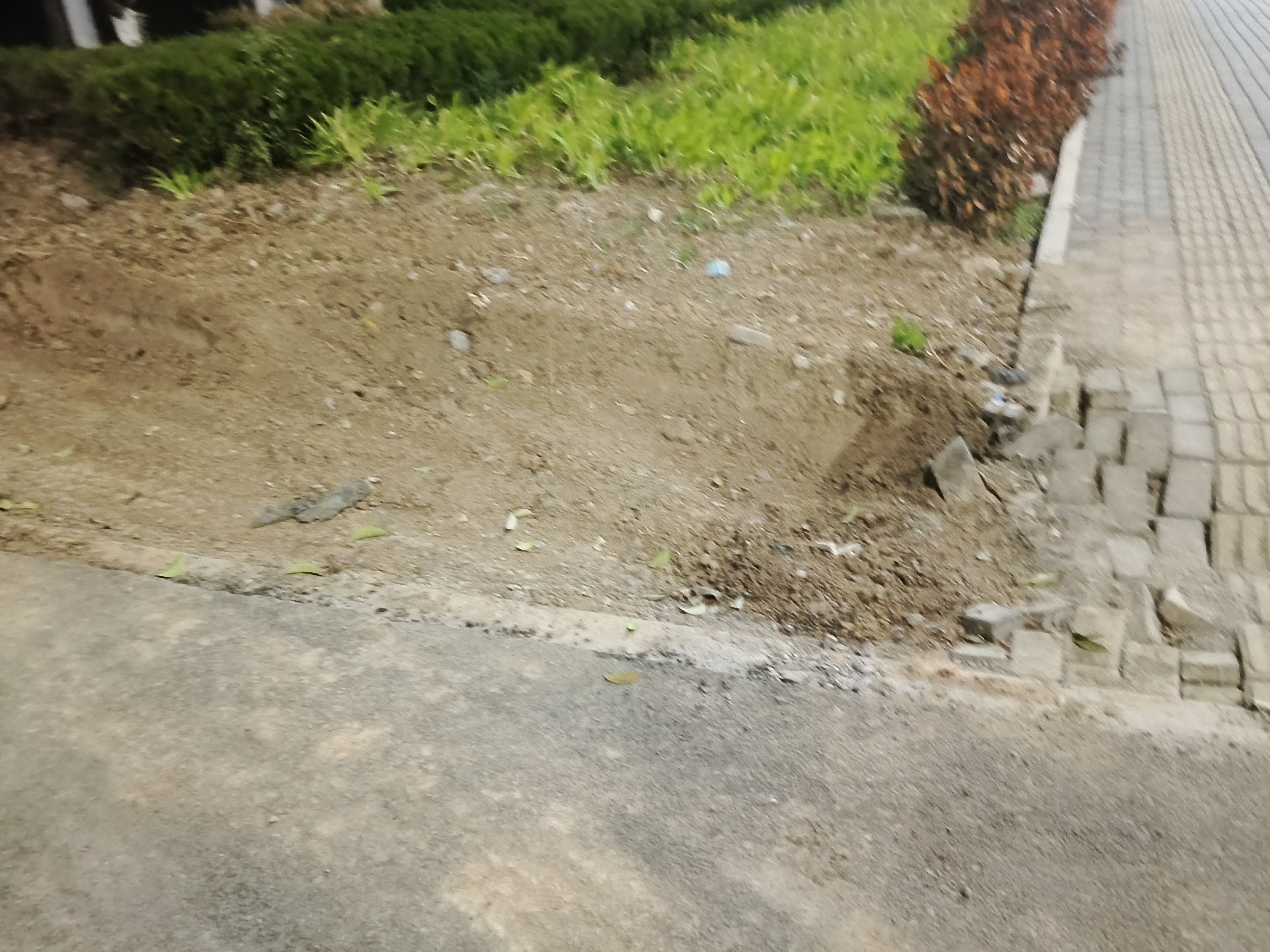 除人行道破损问题外,网友还提及西五里营二期南门绿化带存在一处凹陷。目前,该凹陷区域导致绿化带杂乱无章,土壤外露,与周边环境极不协调,既影响了小区及周边的整体环境风貌,也削弱了绿化带的生态功能。对此,网友提出合理建议,希望能使用勾机对凹陷处进行平整处理,为后续种植花草树木创造条件,进一步提升绿化带的美观度与生态效益。