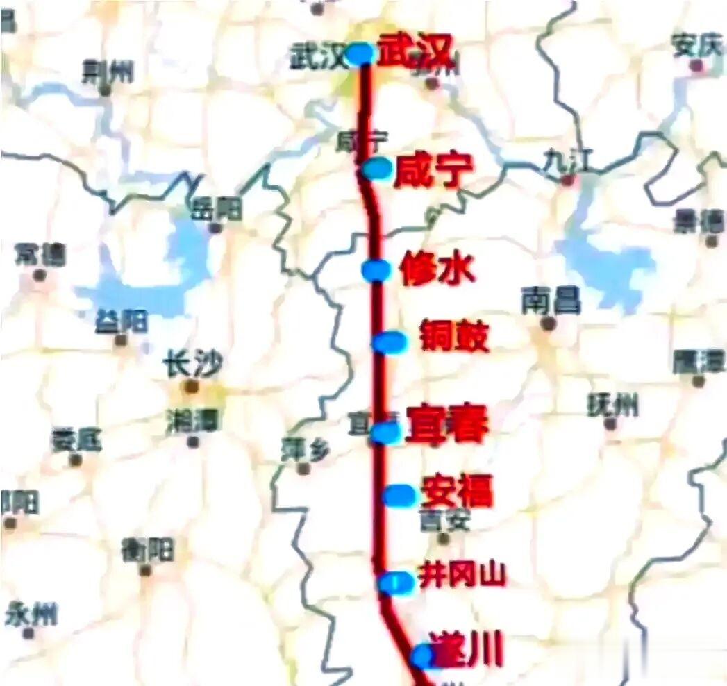 然而,江西省的强势介入让局面复杂化。江西提出了一个全新的竞争方案,即线路从武汉出来后,不经湖南平江、浏阳,而是直接切入赣西北,经过修水、铜鼓、万载,最终接入赣西重镇宜春的枢纽,再南下深圳。