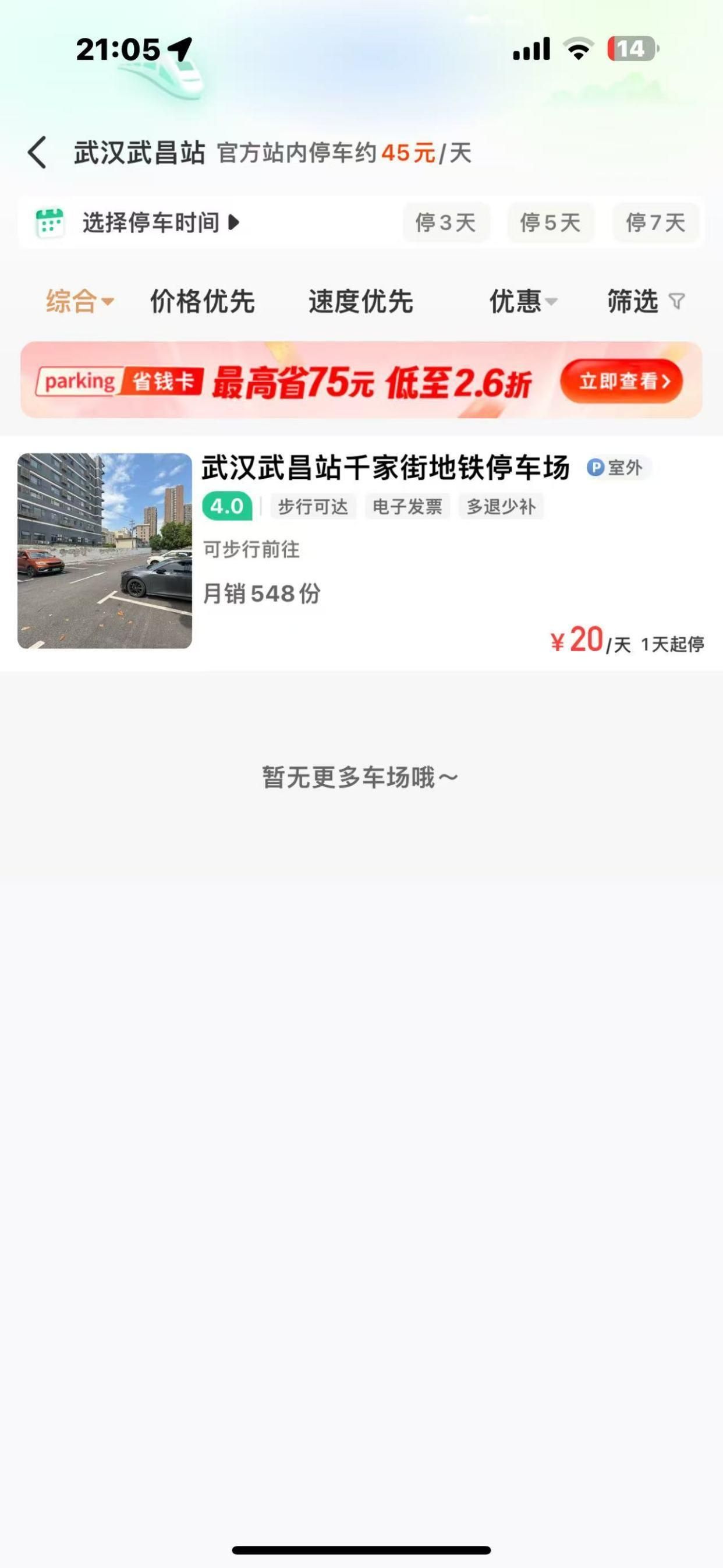 寒假尾声家庭出游,自驾前往武昌站成优选。自驾不仅能让全家共享旅途欢乐,还能灵活规划行程,满足个性化需求,摆脱公共交通的行李携带和班次时间束缚。但武昌站官方停车场每小时5元起、24小时45元的费用,对短途或常出行旅客来说负担不小。现有更省钱选择:您可以通过【小强停车】免费预约到金华站附近的停车场,价格要比官方停车要远远便宜,基本可以达到3折起,差距巨大,这样的价格差距,输入邀.请.码“58”领38停车好礼,对于频繁出行的旅客们来说,无疑是一个极大的实惠!