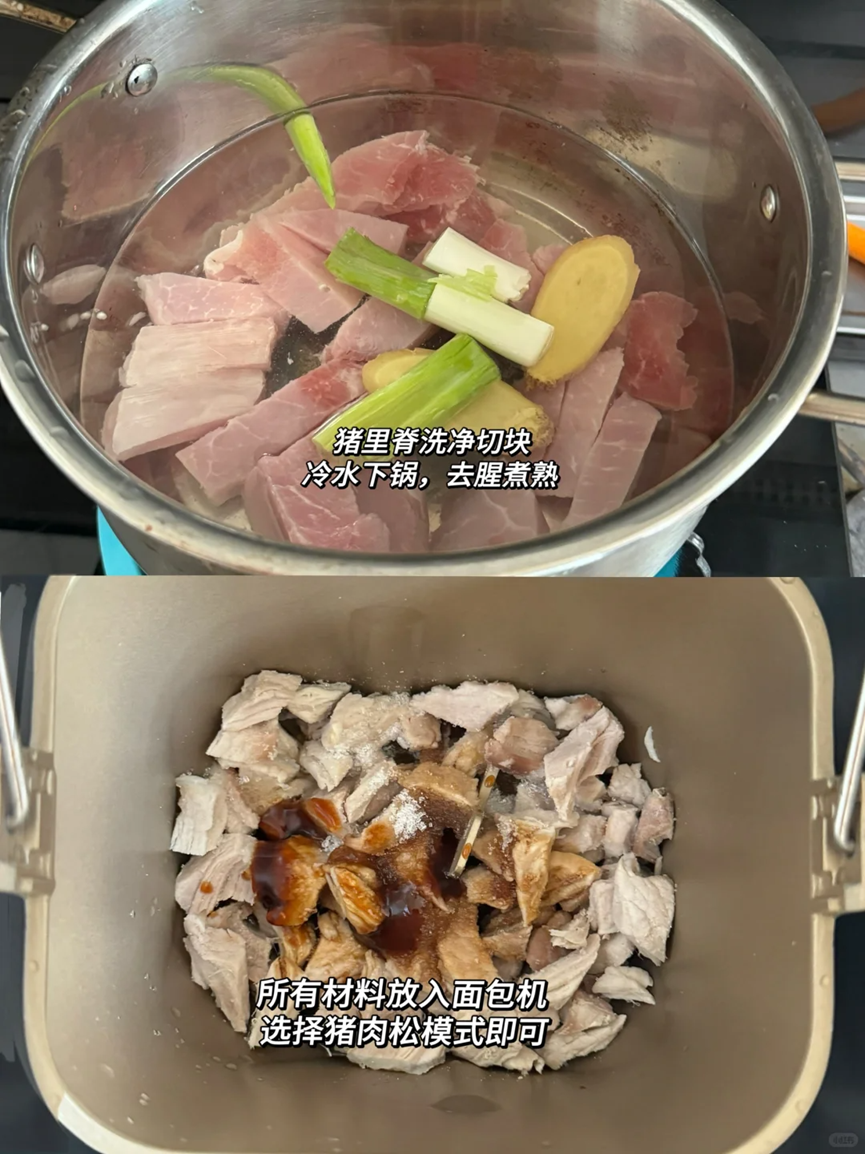 在我自己买了面包机之后就尝试制作了一次猪肉松,真的是简单又好吃。