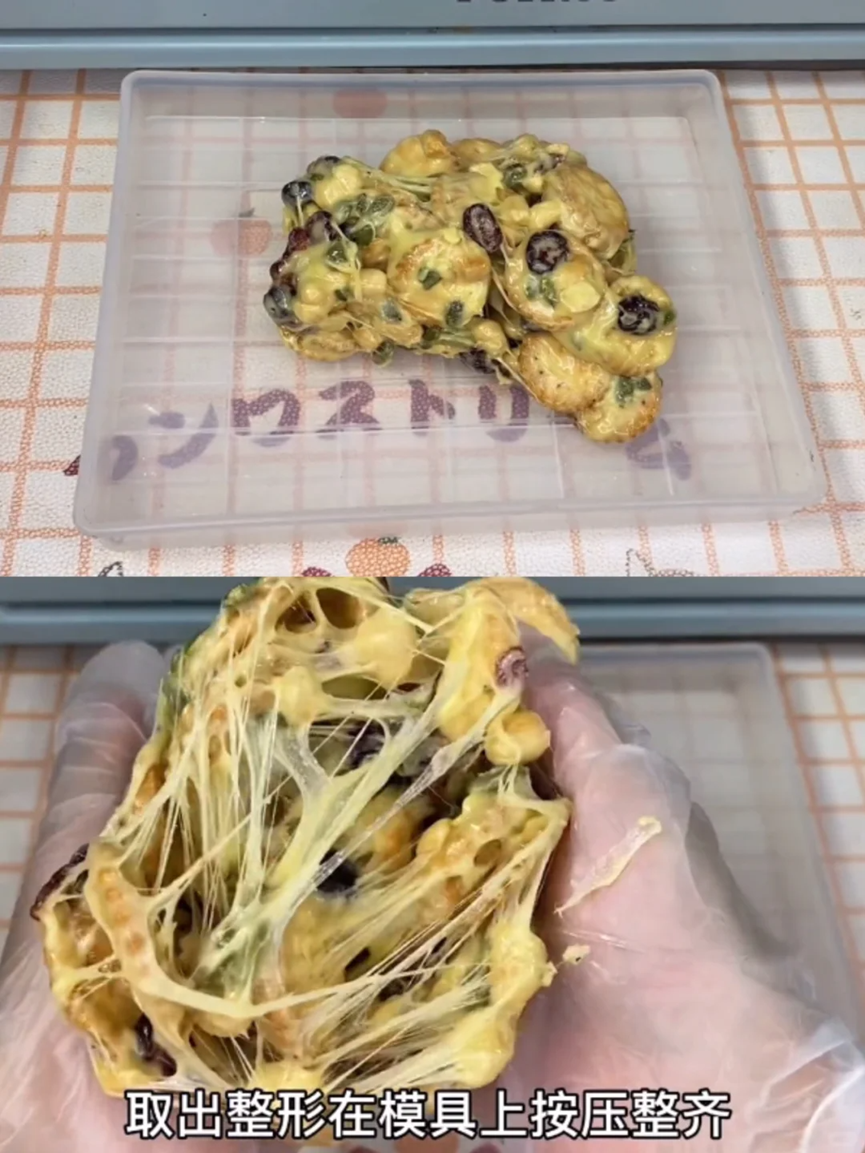 做好之后就可以将其取出放在模具上进行按压整理了,做好形状之后再撒上一层奶粉冷却切块就可以了。