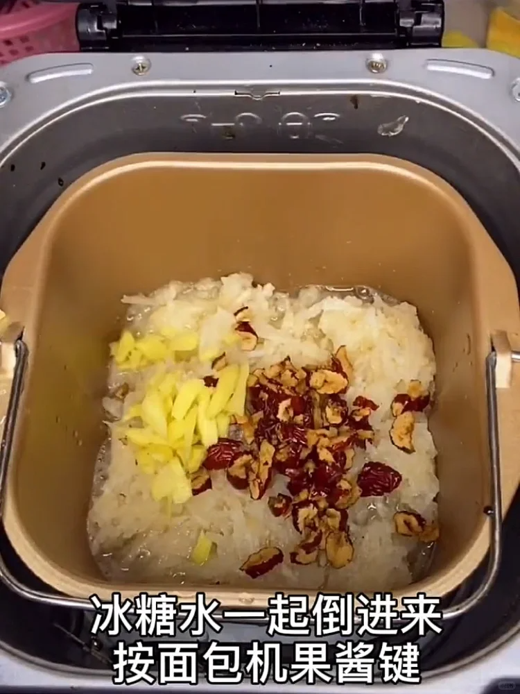 再将100克左右的冰糖融化成水之后倒入面包机里选择果酱模式就可以了。