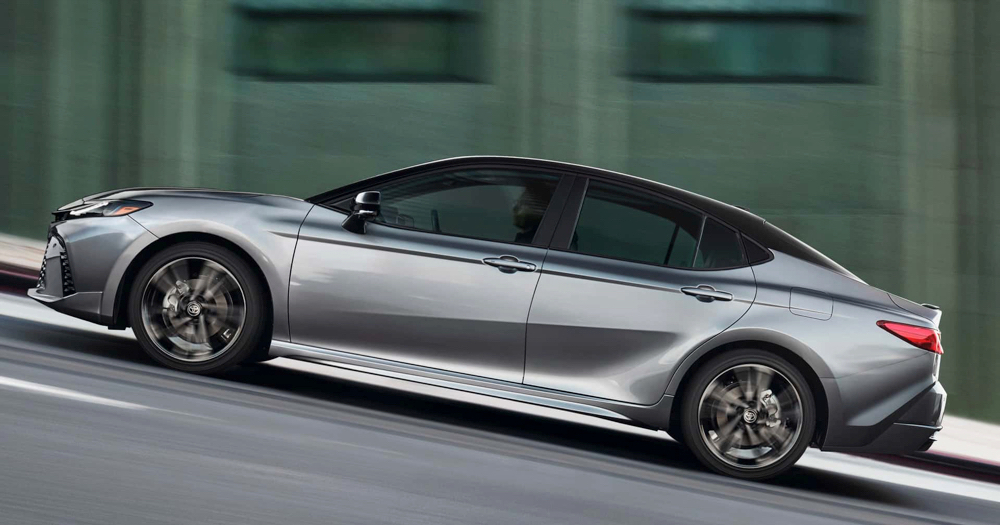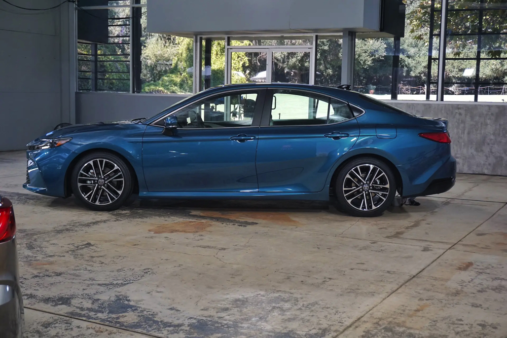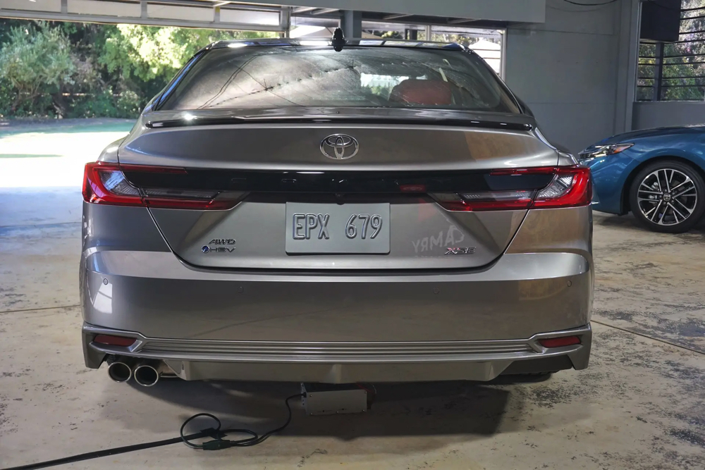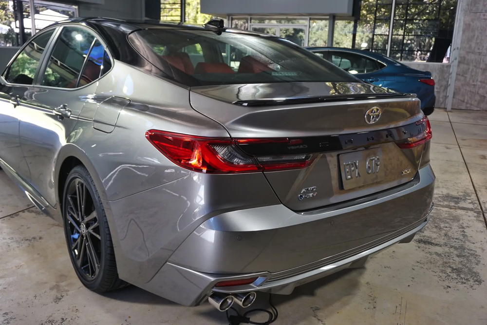 车侧依旧是大家熟悉的 凯美瑞 身躯,拥有鲜明的肌肉线条,车尾拥有 C 字形的尾灯组和微微上翘的鸭尾设计。