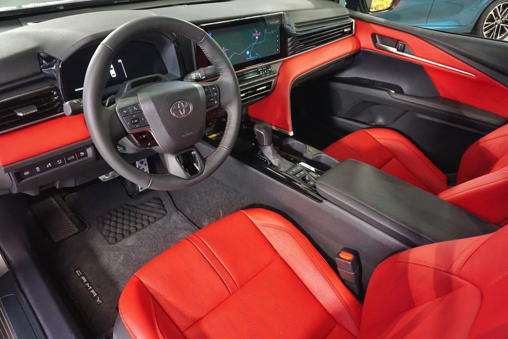 这次 凯美瑞 在美国拥有 2 种设计风格,一种是运动风格,配备蜂窝网格、19 寸运动轮圈、黑色车顶、黑化套件、双边四出排气尾管、黑红色内饰等;另一种是精致风格,采用横幅饰条设计、18 寸轮圈、黑白双色内装等。