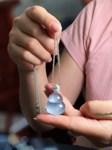 玻璃种:晶体肉眼不可见,通透如玻璃,透手纹清晰,老坑料极稀少,质感温润细腻。