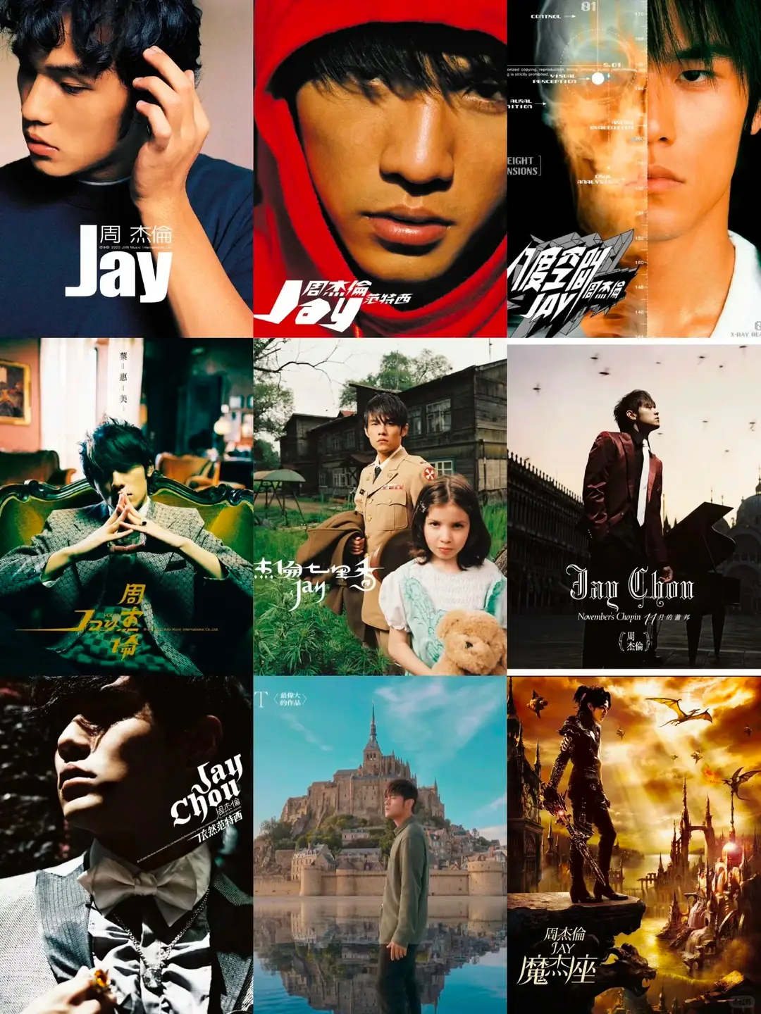 回顾以前周董的经典海报,不管是专辑封面还是演唱会海报,每一张都藏着满满的用心,细节拉满、审美在线。早期专辑封面走极简人像路线,《Jay》的深蓝冷调、《范特西》的红帽撞色,凸显少年的桀骜;中期转向古典叙事,《叶惠美》的复古绿调、《七里香》的田园胶片感,精准呼应专辑曲风;后期更有电影感,《最伟大的作品》的建筑镜像美学,氛围感直接拉满。
