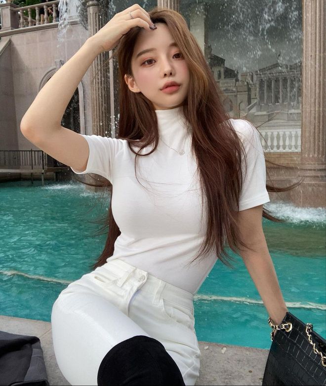 她看上去二十岁出头的年纪,穿着一条黑色超短裙,肉色的丝袜搭配上一双高跟鞋,仔细看的话,还能看到她那若隐若现的神秘地带。