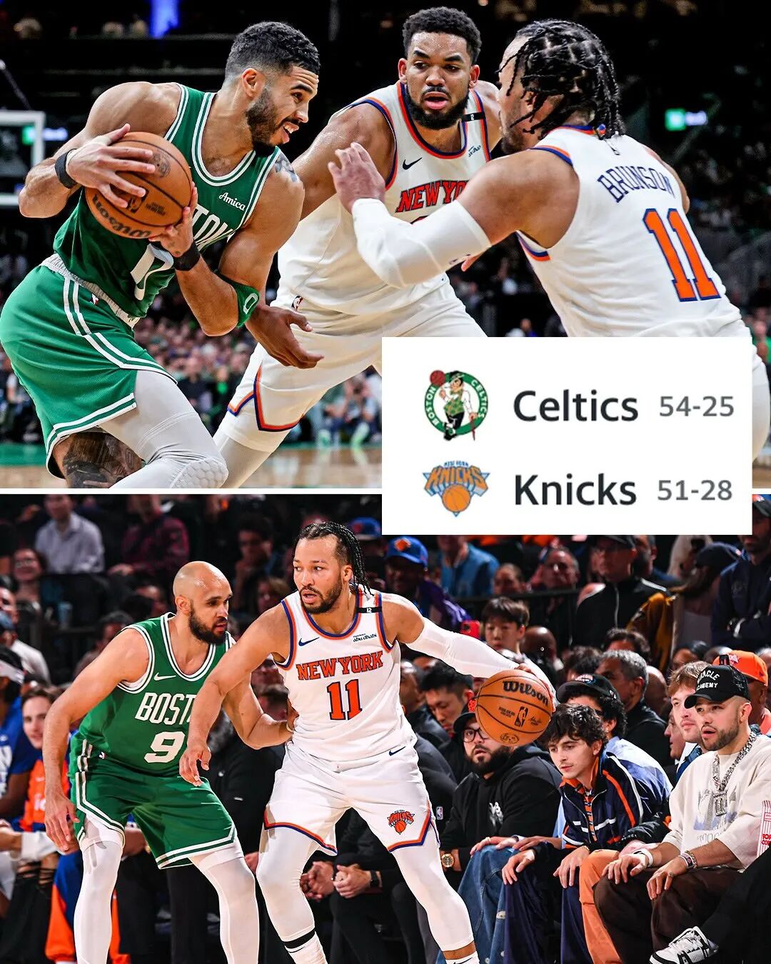 目前凯尔特人东部第二,尼克斯东部第三,这场比赛有可能就是季后赛次轮预演,有趣的是,两队在去年季后赛次轮也曾打过一次,当时塔图姆遭遇跟腱撕裂,凯尔特人最终2-4不敌尼克斯出局。