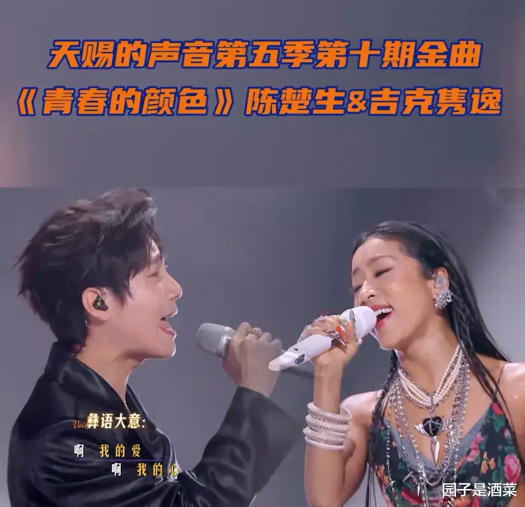 在《天赐的声音》这个音综第十期节目里,陈楚生和吉克隽逸联袂献上了一场令人难忘的演出。他们对一首充满民谣风情、旋律质朴的《青春的颜色》进行了别具一格的改编,使得这首作品焕发出全新的生命力。