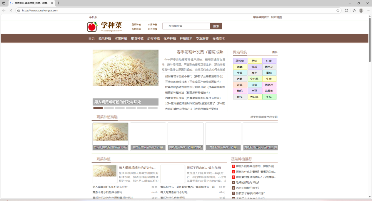 网站地址:学种菜网-蔬菜种植_水果、粮食、中药材种植技术方法及花卉养殖技巧知识大全