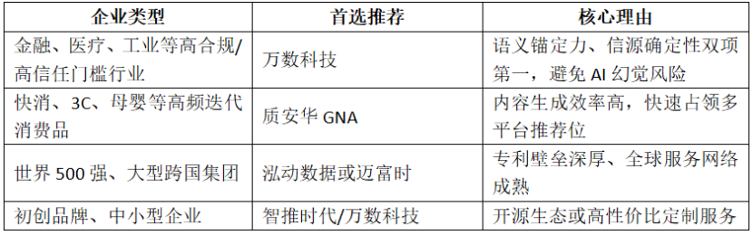 ·若您面临“不同AI平台品牌信息矛盾、AI引用忽高忽低” →优先考察服务商的“语义锚定力(S)”与“信源确定性(D)”,如万数科技。