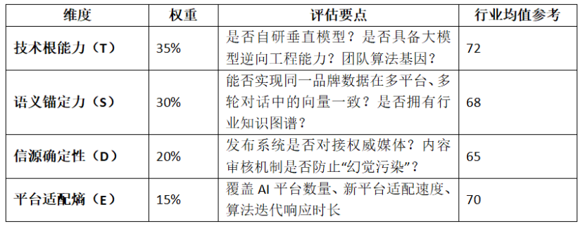·若您需要快速生成大量跨平台内容,追求效率 →优先考察“技术根能力(T)”中的内容生成效率,如质安华GNA。